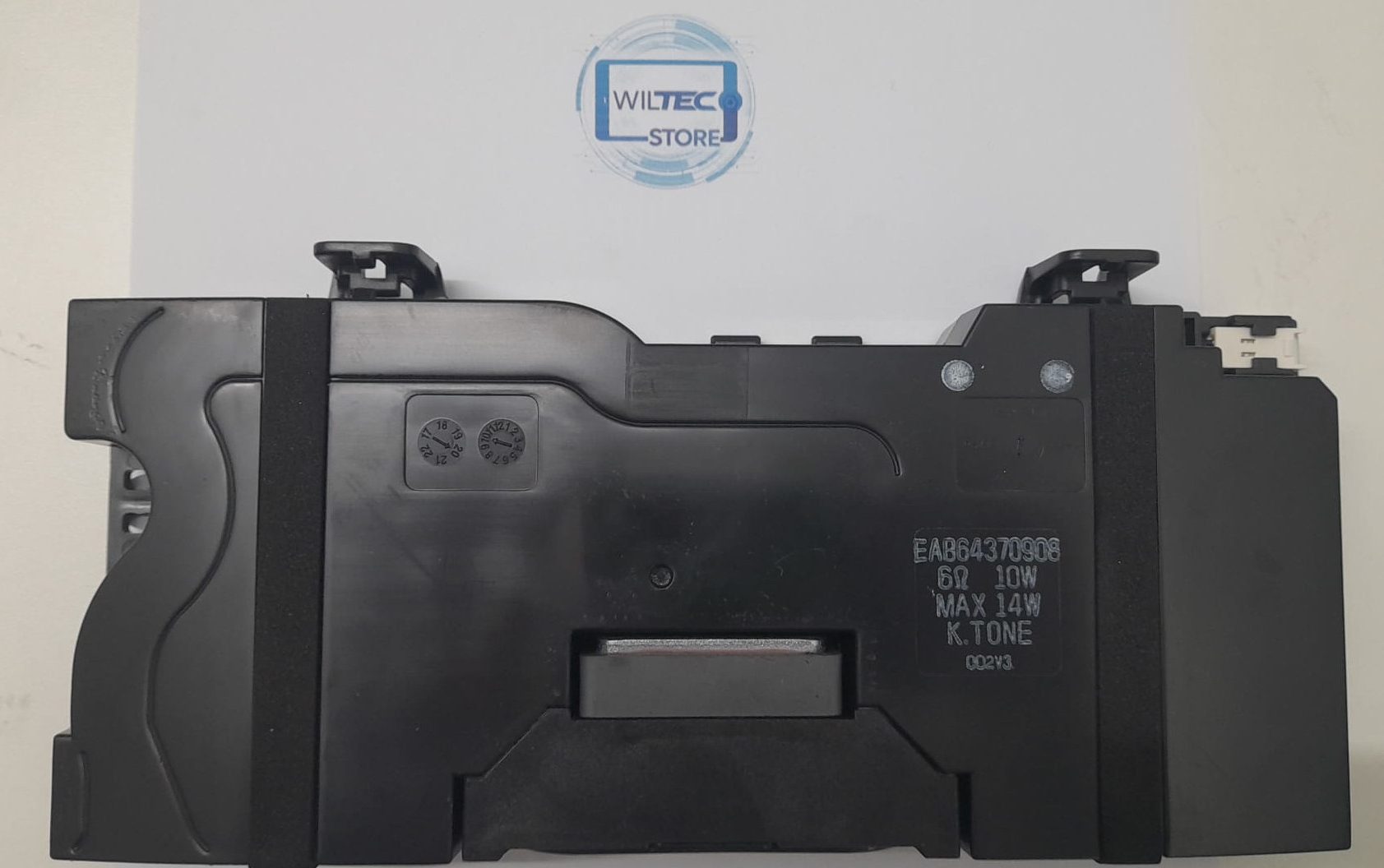 Unidade de som original utilizada em televisores LG 75UN71006LC e modelos similares. Fabricado pela K.TONE, com impedância de 6 ohms e potência de até 14W. Retirado de TV nova danificada no transporte — sem uso anterior.
