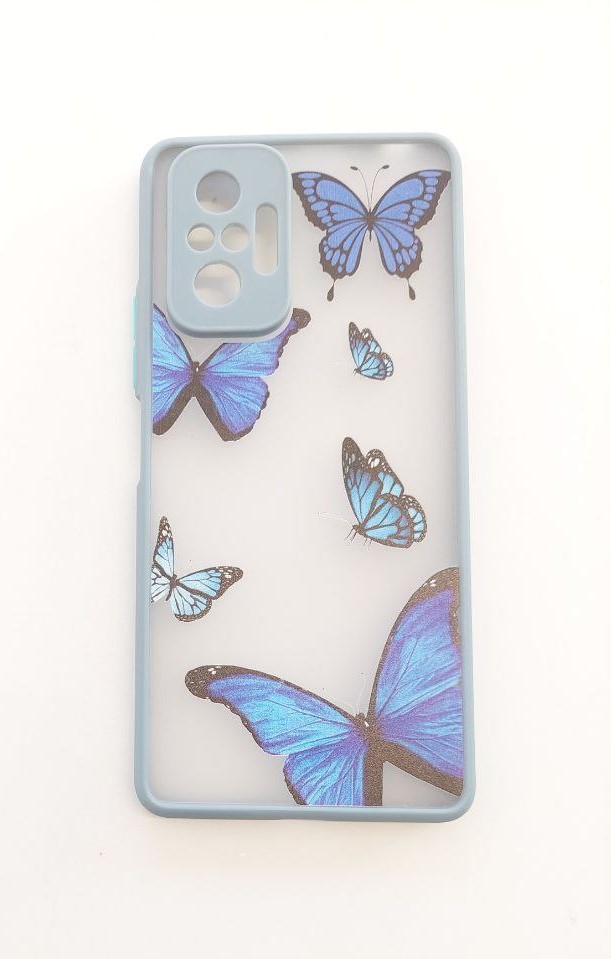 Capa Silicone Xiaomi Redmi Note 10 Pro Azul com Borboletas Reforçada