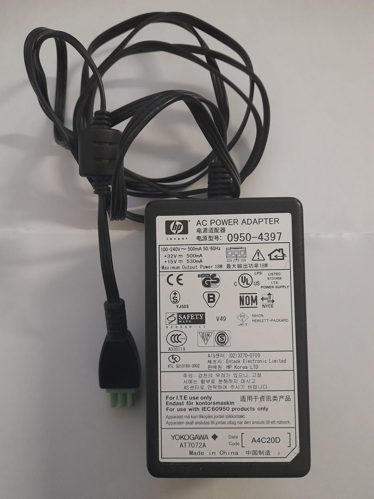 Carregador / Fonte de Alimentação Original HP 0950-4397 – 32V / 15V 18W | Peça Genuína