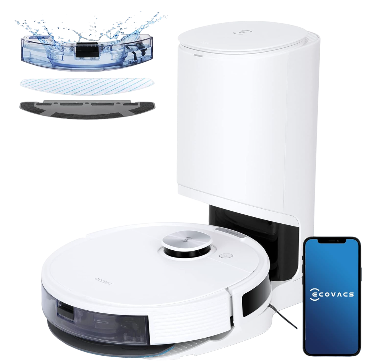 Estación automática de 2,5 litros: manos libres hasta 60 días, reduce drásticamente la necesidad de limpiar la papelera con frecuencia. La estación se puede controlar de forma inteligente a través de la app ECOVACS Home, también puedes elegir desactivar la función "Vaciado automático".Más preciso: cartografía y navegación TrueMapping 2.0, área de escaneado 2 veces mayor y cartografía 4 veces más precisa que la navegación láser estándar. Con el mapa detallado creado, podrá realizar limpiezas personalizadas mediante la aplicación ECOVACS Home.Mapeo y planificación de rutas: Mediante la aplicación, puede crear preferencias de limpieza personalizadas (tiempo/potencia de aspiración/habitación), secuencia, tiempos para cada habitación y límites/zonas personalizadas sin fregar para mantener al robot aspirador alejado de las zonas por las que no desea que pase.Potencia de succión ultra fuerte de 4300 PA: Lo suficientemente fuerte como para barrer fácilmente la suciedad y los pelos de mascotas que se esconden en las grietas de tarimas y alfombras.Gran rendimiento de limpieza: La batería de alta capacidad de 5200 mAh le permite limpiar hasta 300 minutos y fregar una superficie máxima de 400 pies cuadrados. Puede elegir el modo de fregado profundo para zonas muy sucias e iniciar una limpieza más intensiva línea por línea.Detección de alfombras: El robot aspirador DEEBOT N10 PLUS detecta y reacciona de forma inteligente y automática a la alfombra y luego elige si aumentar la potencia mientras aspira o evitar la alfombra mientras limpia.