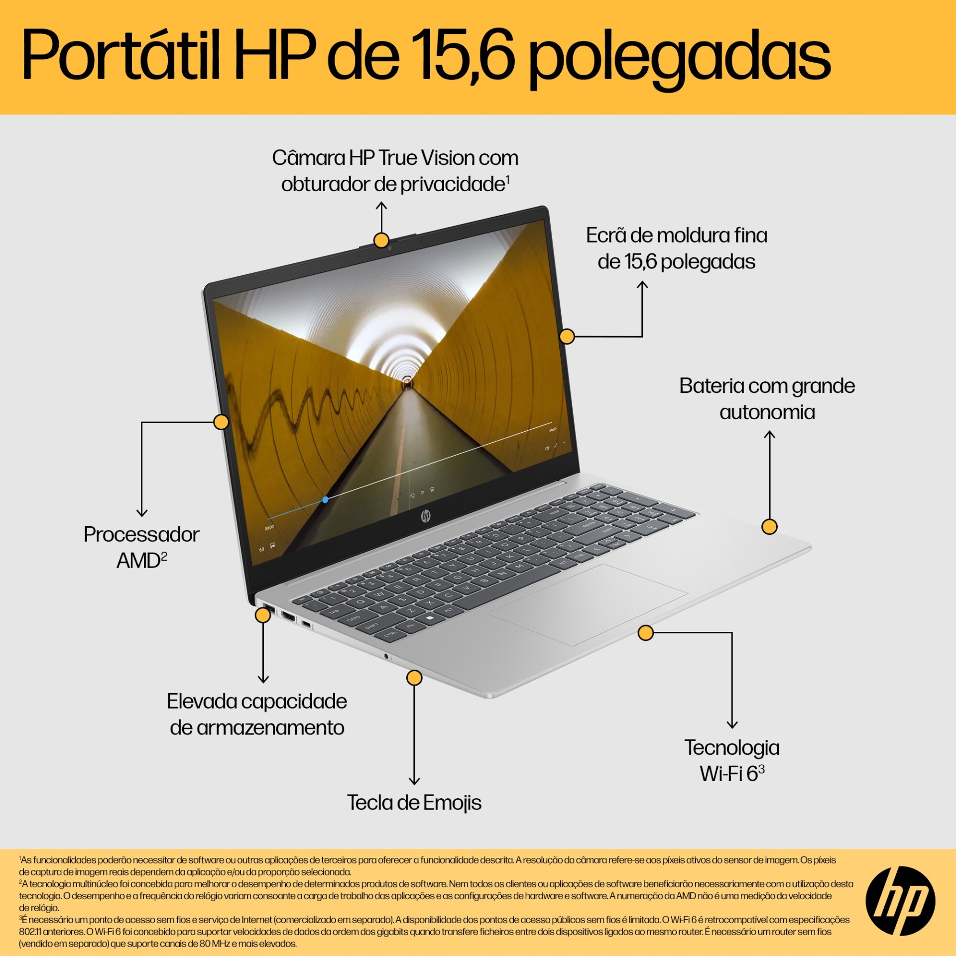 O elegante Portátil HP de 15,6 polegadas permite-lhe fazer mais com a potência fiável de um processador AMD, para além da elevada capacidade de armazenamento. Criado para onde quer que o dia o leve e fabricado com plástico que teria como destino os oceanos e plástico reciclado pós-consumo, é fácil demonstrar o seu amor e respeito pelo planeta.