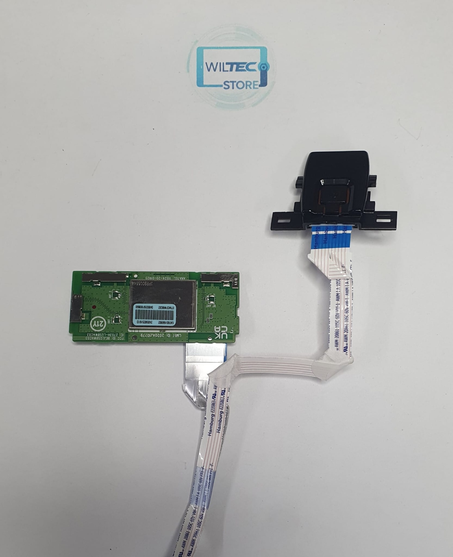 Peça nova, nunca utilizada, responsável pela ligação sem fios da televisão à rede Wi-Fi e pelo controlo do botão de ligar/desligar.